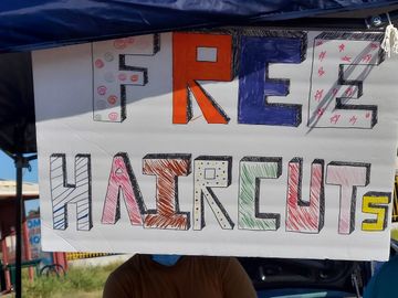 Haircuts are done 1st Saturday of each month on the corner of Alma School & Main along with lunch.